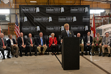 Tombigbee Electric Cooperative received $29 million in grants and loans from the USDA ReConnect program in 2019. Chief executive Steve Foshee speaks at a celebration of the award. Photo courtesy of the Hamilton, Alabama, Journal Record