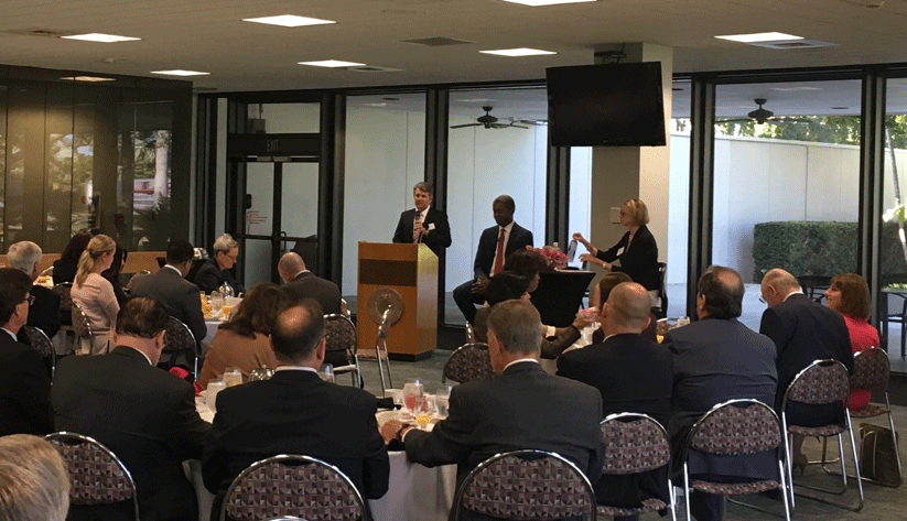 The Miami Branch hosted a Public Affairs Forum during the visit of Atlanta Fed president Raphael Bostic (seated at center). Photo by David Fine