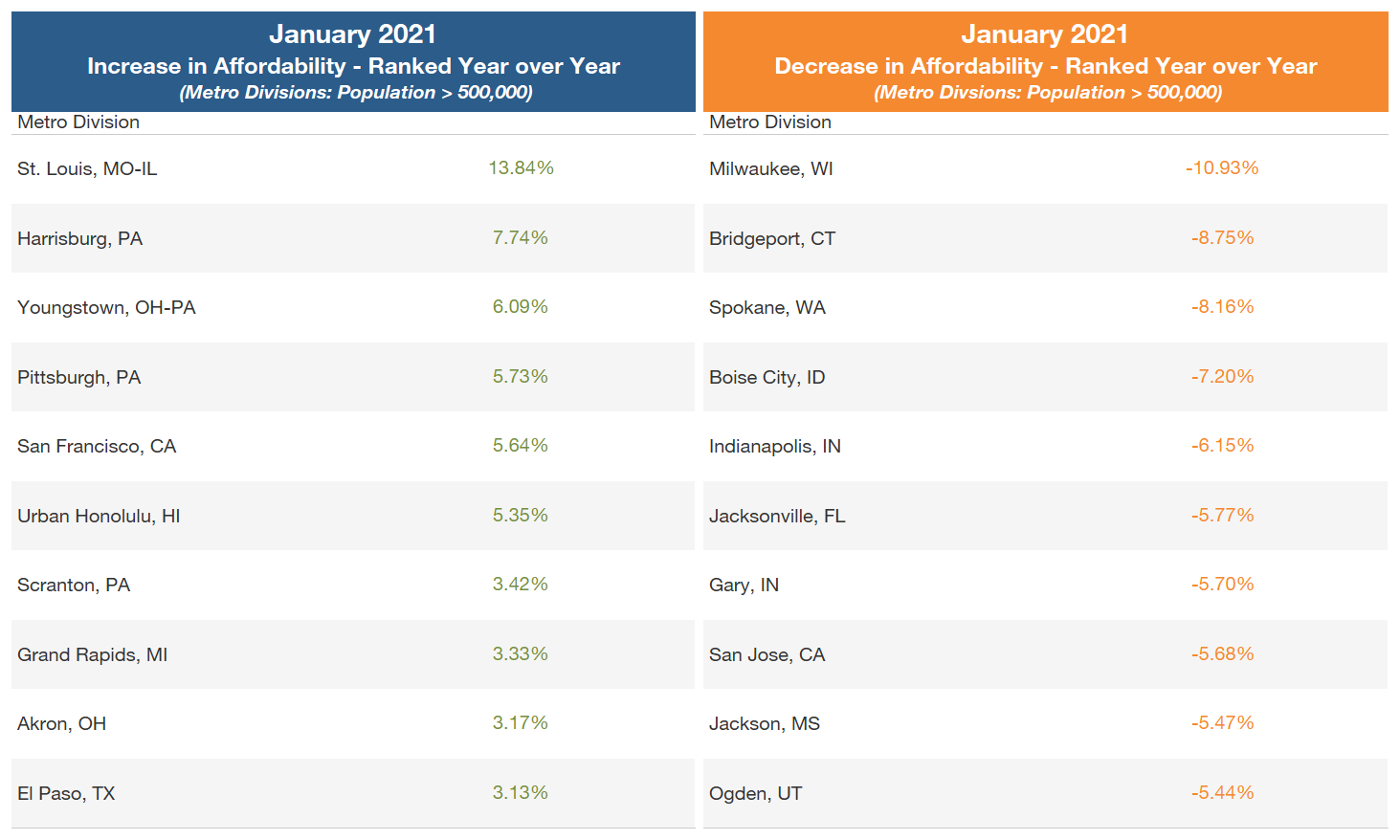 - 40 percent of metros had year-over-year erosion in affordability in January