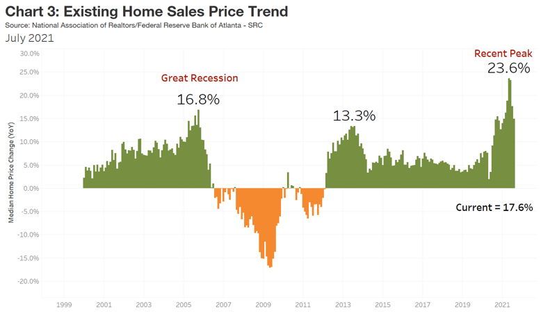 - Home price appreciation moderated in July, increasing 17.6 percent over the past year.